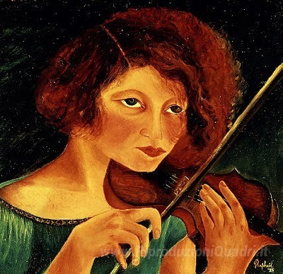Ti offriamo una riproduzione artigianale su tela dell'opera famosa 'Autoritratto con violino' di Antonietta Raphael, dal Museo delle Riproduzioni.