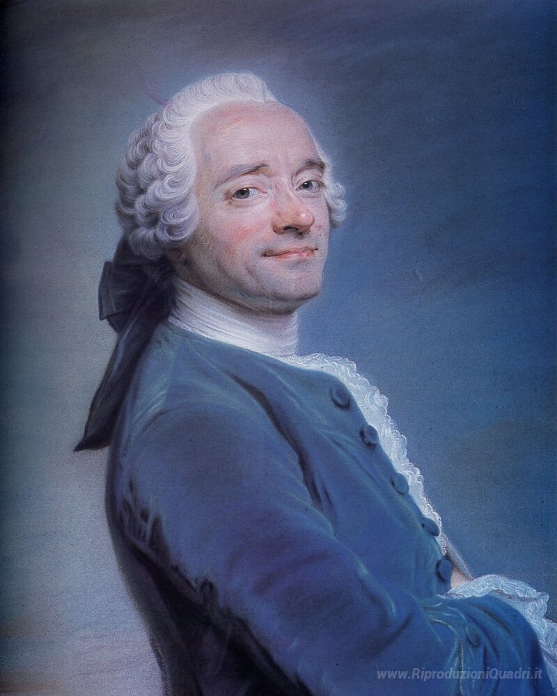 Ti offriamo una riproduzione artigianale su tela dell'opera famosa 'Autoritratto con volant' di Maurice Quentin de La Tour, dal Museo delle Riproduzioni.