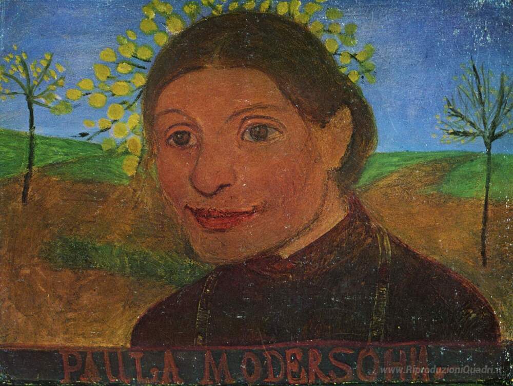 Benvenuti nella nostra selezione di dipinti a olio italiani, dove l'arte incontra l'eleganza. Oggi vi presentiamo un'opera straordinaria: Autoritratto di fronte alberi in fiore dell'illustre artista Paula Modersohn-Becker. Questa artista, pioniera dell'espressionismo, è nota per i suoi ritratti intensi e vibranti che catturano l'essenza dell'animo umano, fondendo abilmente delicatezza e forza.