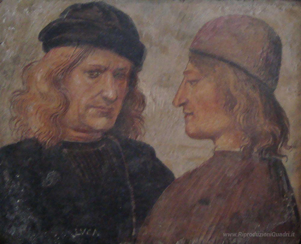 Ti offriamo una riproduzione artigianale su tela dell'opera famosa 'Autoritratto di Luca Signorelli (a sinistra)' di Luca Signorelli, dal Museo delle Riproduzioni.