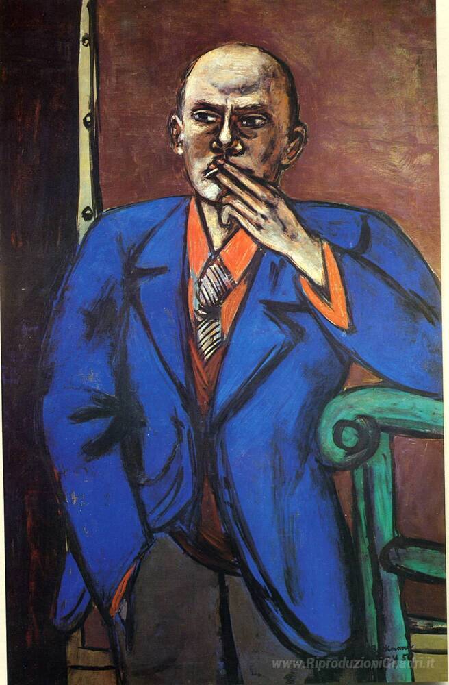 Ti offriamo una riproduzione artigianale su tela dell'opera famosa 'Autoritratto in giacca blu' di Max Beckmann, dal Museo delle Riproduzioni.