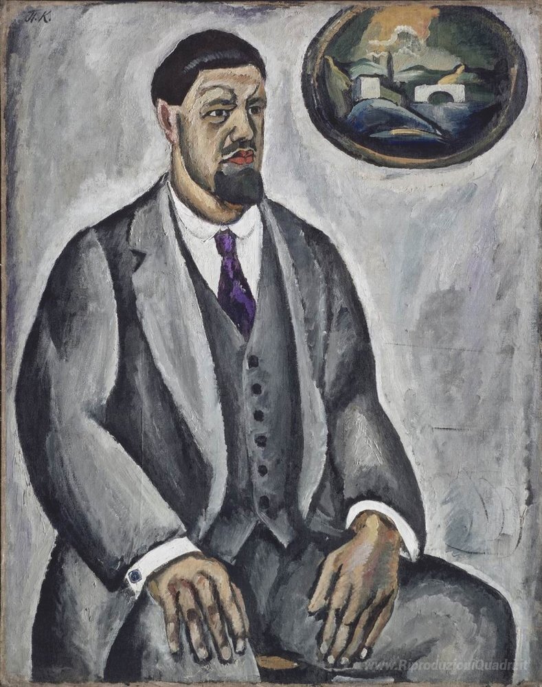 Ti offriamo una riproduzione artigianale su tela dell'opera famosa 'Autoritratto in grigio' di Pyotr Konchalovsky, dal Museo delle Riproduzioni.