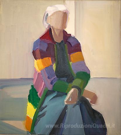Ti offriamo una riproduzione artigianale su tela dell'opera famosa 'Autoritratto in lungo maglione a strisce' di Louisa Matthiasdottir, dal Museo delle Riproduzioni.