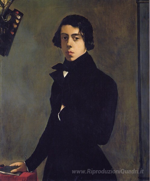 Ti offriamo una riproduzione artigianale su tela dell'opera famosa 'Autoritratto in un Redingote' di Theodore Chasseriau, dal Museo delle Riproduzioni.