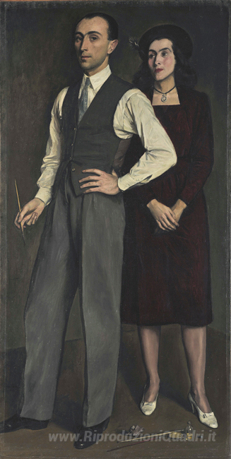 Ti offriamo una riproduzione artigianale su tela dell'opera famosa 'L'artista con la sua moglie' di Yiannis Moralis, dal Museo delle Riproduzioni.