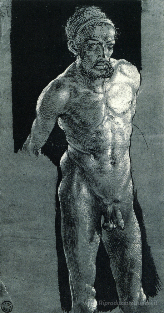 Ti offriamo una riproduzione artigianale su tela dell'opera famosa 'Nude Sel-ritratto' di Albrecht Durer, dal Museo delle Riproduzioni.