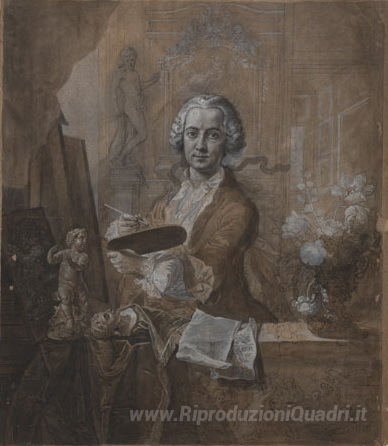 Ti offriamo una riproduzione artigianale su tela dell'opera famosa 'Selbstbildnis an der Staffelei' di Johann Anton de Peters, dal Museo delle Riproduzioni.
