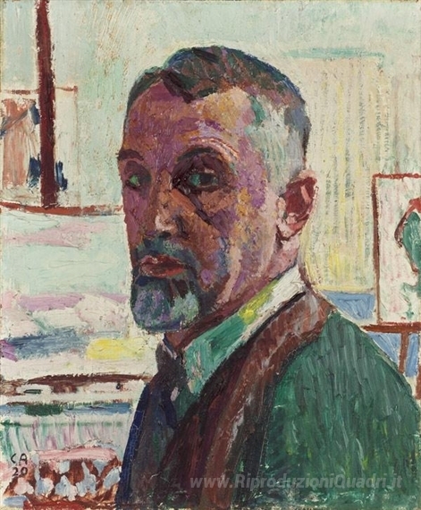 Ti offriamo una riproduzione artigianale su tela dell'opera famosa 'Selbstbildnis im Atelier' di Cuno Amiet, dal Museo delle Riproduzioni.