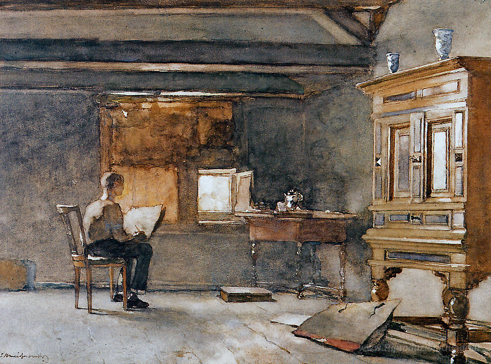 Ti offriamo una riproduzione artigianale su tela dell'opera famosa 'Studio dell'artista' di Johan Hendrik Weissenbruch, dal Museo delle Riproduzioni.