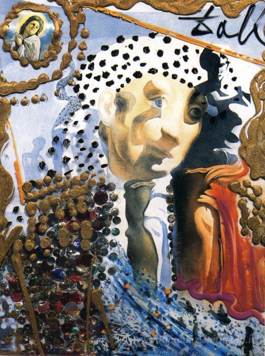 Ti offriamo una riproduzione artigianale su tela dell'opera famosa 'The Whole Dalì in un volto' di Salvador Dali, dal Museo delle Riproduzioni.