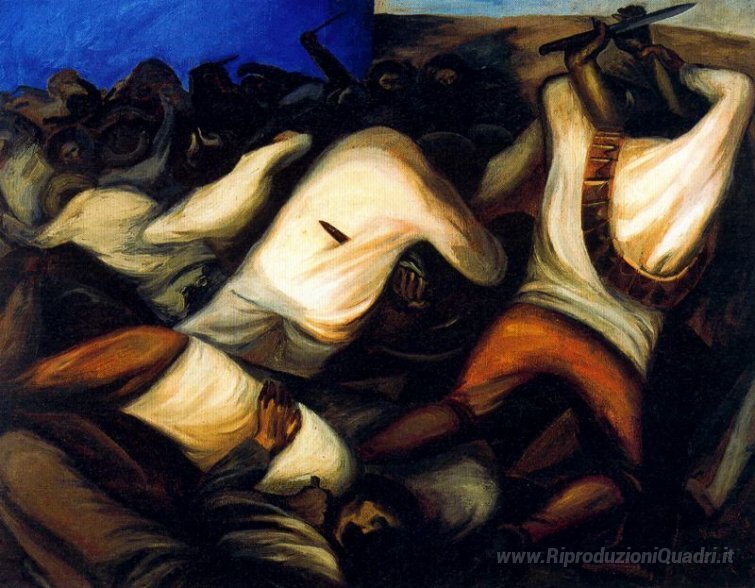 Ti offriamo una riproduzione artigianale su tela dell'opera famosa 'Combattimento' di Jose Clemente Orozco, dal Museo delle Riproduzioni.