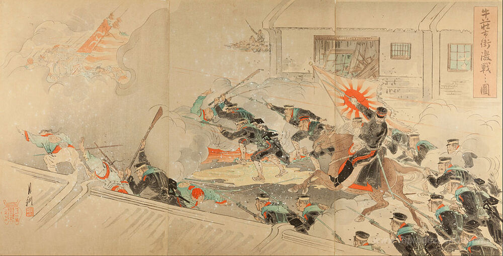 Ti offriamo una riproduzione artigianale su tela dell'opera famosa 'Immagine di Battle grave per le strade di Gyuso' di Ogata Gekko, dal Museo delle Riproduzioni.