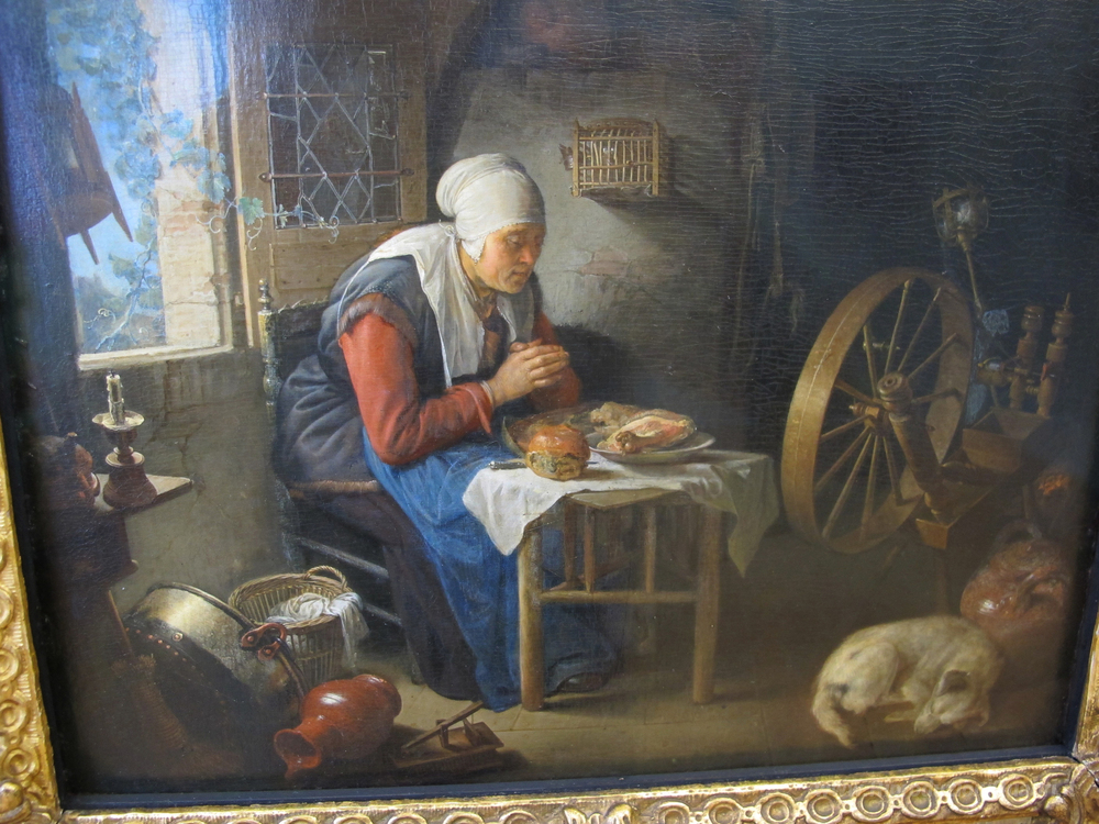 Ti offriamo una riproduzione artigianale su tela dell'opera famosa 'La preghiera del filatore' di Gerrit Dou, dal Museo delle Riproduzioni.