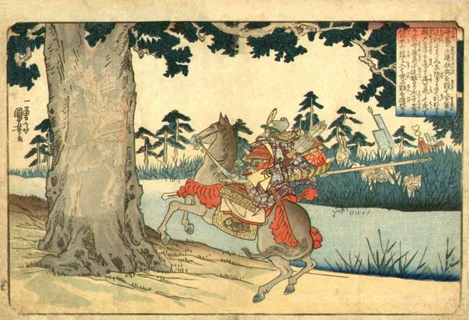 Ti offriamo una riproduzione artigianale su tela dell'opera famosa 'Per sfuggire da Moriya che lo ha assalito il principe Shotoku sv' di Utagawa Kuniyoshi, dal Museo delle Riproduzioni.