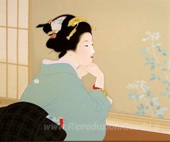 Ti offriamo una riproduzione artigianale su tela dell'opera famosa 'Giovani Fogli' di Uemura Shoen, dal Museo delle Riproduzioni.