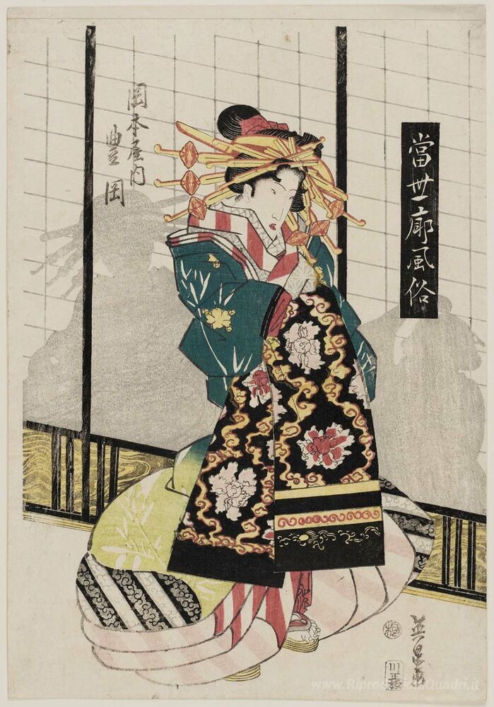 Ti offriamo una riproduzione artigianale su tela dell'opera famosa 'Toyooka del Okamotoya' di Keisai Eisen, dal Museo delle Riproduzioni.