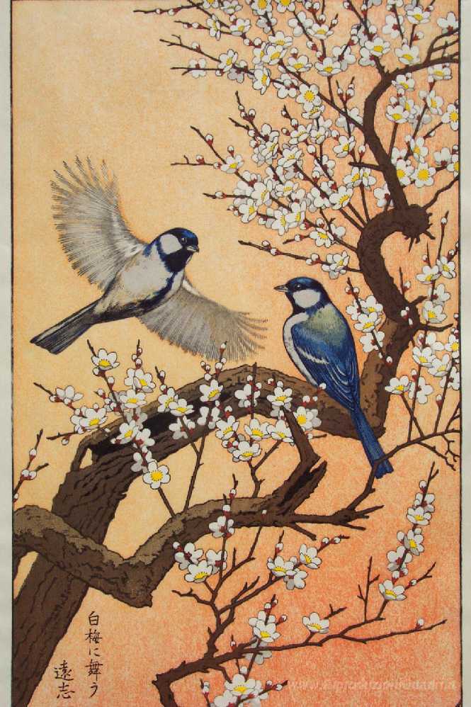 Ti offriamo una riproduzione artigianale su tela dell'opera famosa 'Birds of the Seasons - Primavera' di Toshi Yoshida, dal Museo delle Riproduzioni.