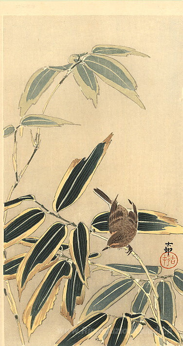 Ti offriamo una riproduzione artigianale su tela dell'opera famosa 'Culbianco e Bamboo' di Ohara Koson, dal Museo delle Riproduzioni.