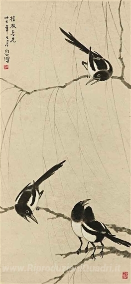 Ti offriamo una riproduzione artigianale su tela dell'opera famosa 'Magpies' di Xu Beihong, dal Museo delle Riproduzioni.