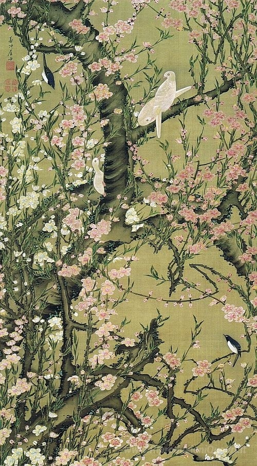 Ti offriamo una riproduzione artigianale su tela dell'opera famosa 'Touka shoukinzu' di Ito Jakuchu, dal Museo delle Riproduzioni.