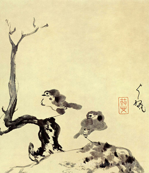 Ti offriamo una riproduzione artigianale su tela dell'opera famosa 'Two Birds' di Bada Shanren, dal Museo delle Riproduzioni.