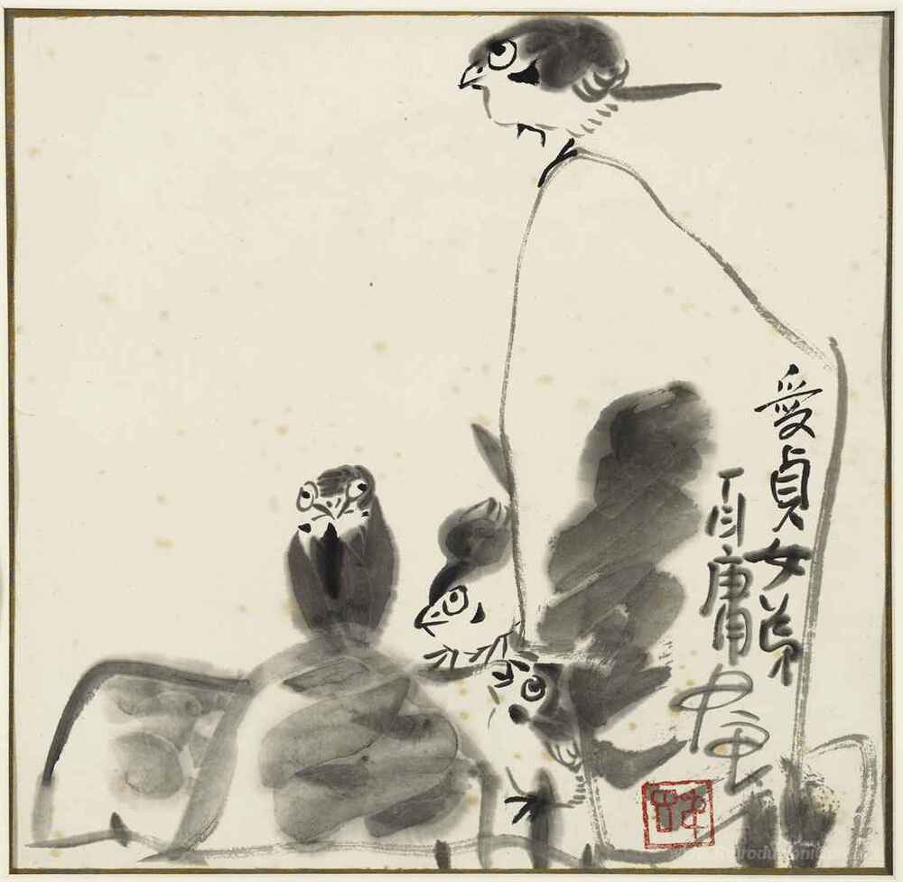 Ti offriamo una riproduzione artigianale su tela dell'opera famosa 'Uccelli e Rocce' di Ding Yanyong, dal Museo delle Riproduzioni.