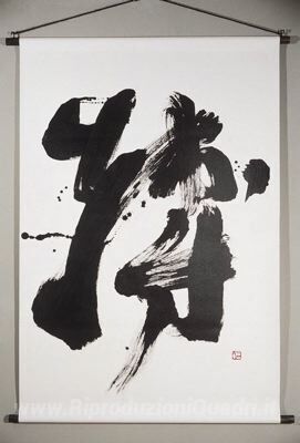 Ti offriamo una riproduzione artigianale su tela dell'opera famosa 'Calligrafia' di Kazuaki Tanahashi, dal Museo delle Riproduzioni.