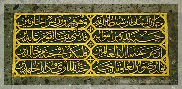 Ti offriamo una riproduzione artigianale su tela dell'opera famosa 'Epitaffio' di Sheikh Hamdullah, dal Museo delle Riproduzioni.