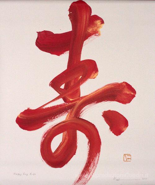 Ti offriamo una riproduzione artigianale su tela dell'opera famosa 'Felice Long Life' di Kazuaki Tanahashi, dal Museo delle Riproduzioni.