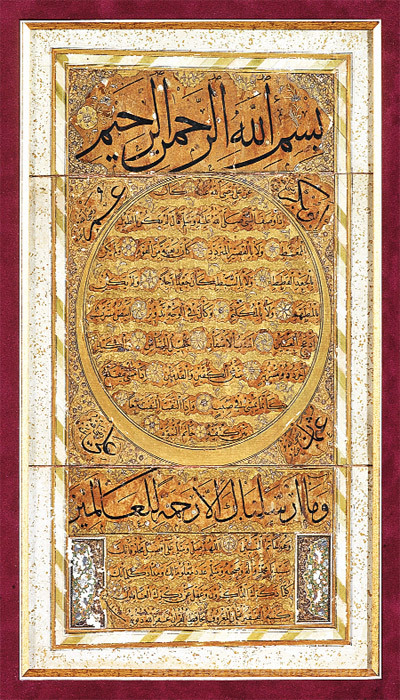 Ti offriamo una riproduzione artigianale su tela dell'opera famosa 'Hilye' di Hafiz Osman, dal Museo delle Riproduzioni.