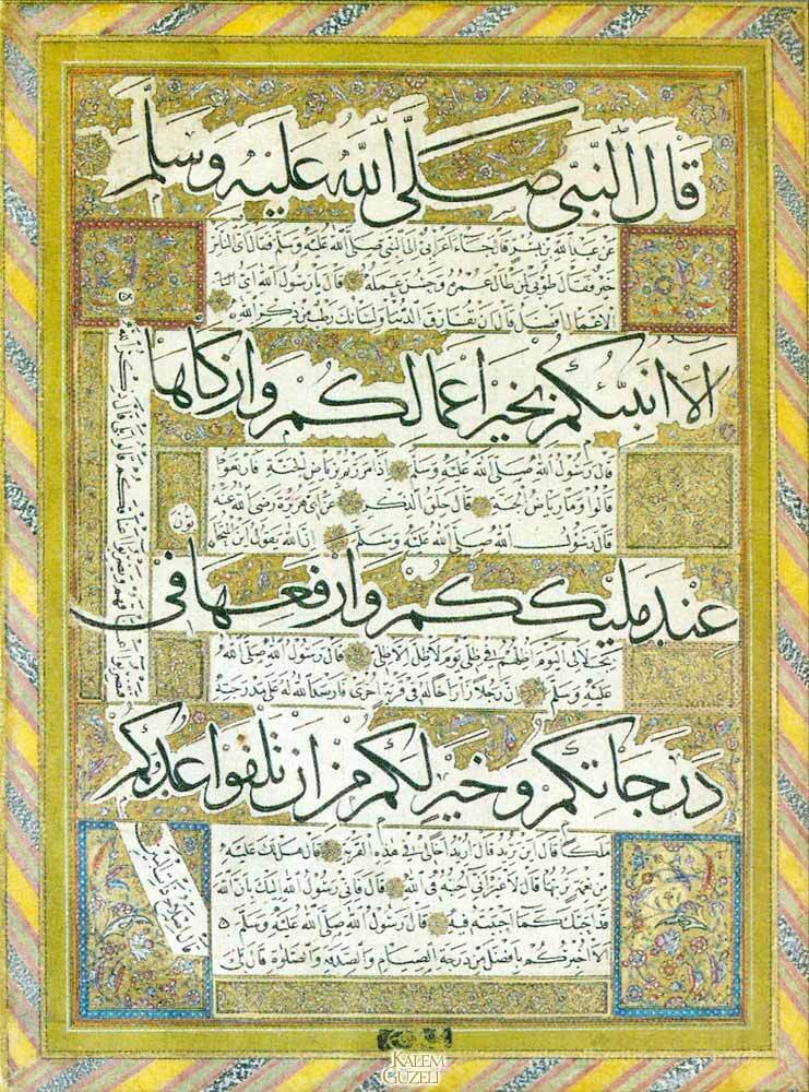 Ti offriamo una riproduzione artigianale su tela dell'opera famosa 'Levha - Hadis-i Serif' di Sheikh Hamdullah, dal Museo delle Riproduzioni.