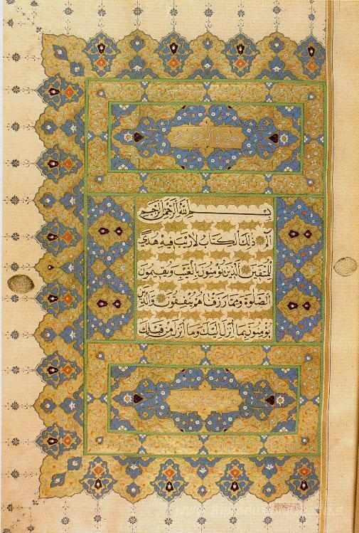 Ti offriamo una riproduzione artigianale su tela dell'opera famosa 'Sacro Corano che copre' di Ahmed Karahisari, dal Museo delle Riproduzioni.