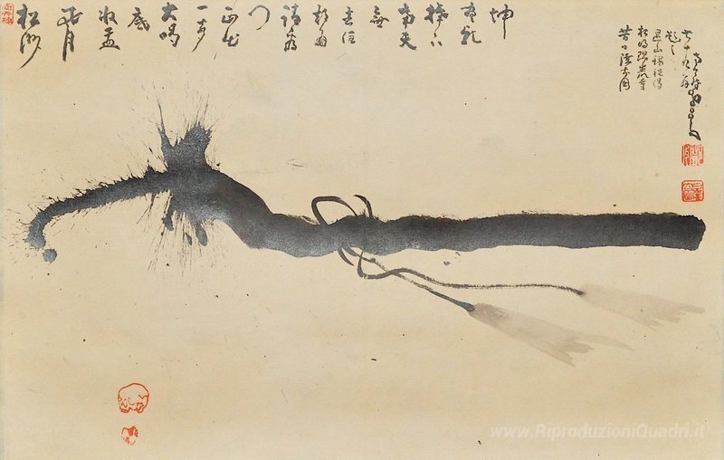 Ti offriamo una riproduzione artigianale su tela dell'opera famosa 'Staff Zen' di Nakahara Nantenbo, dal Museo delle Riproduzioni.