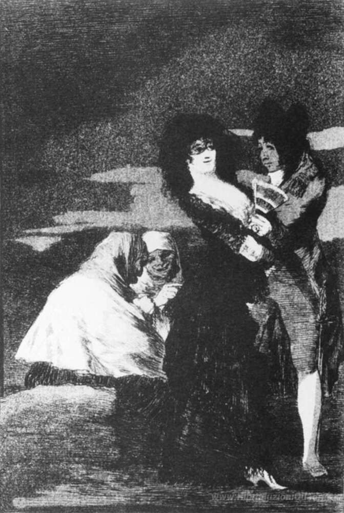 Ti offriamo una riproduzione artigianale su tela dell'opera famosa 'Birds of a Feather' di Francisco Goya, dal Museo delle Riproduzioni.