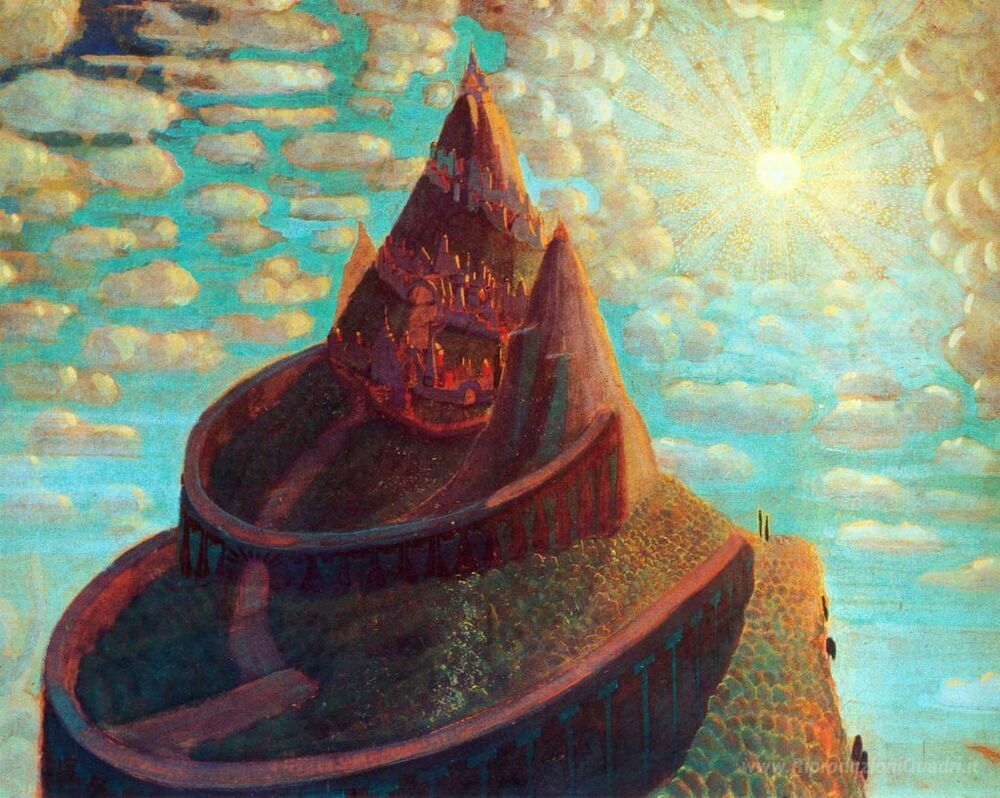 Ti offriamo una riproduzione artigianale su tela dell'opera famosa 'Castello (Castello di Fairy Tale)' di Mikalojus Ciurlionis, dal Museo delle Riproduzioni.