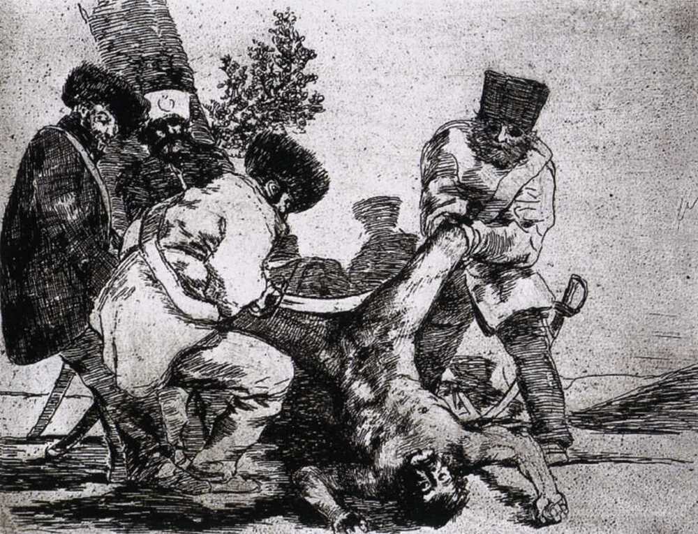 Ti offriamo una riproduzione artigianale su tela dell'opera famosa 'Che altro si può fare?' di Francisco Goya, dal Museo delle Riproduzioni.