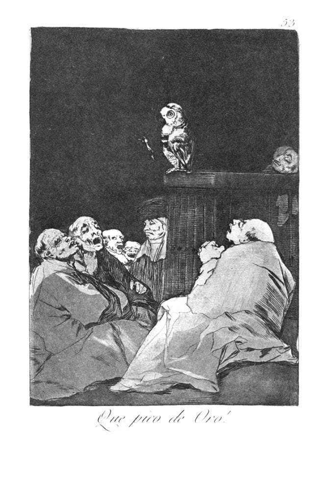 Ti offriamo una riproduzione artigianale su tela dell'opera famosa 'Che becco d'oro!' di Francisco Goya, dal Museo delle Riproduzioni.