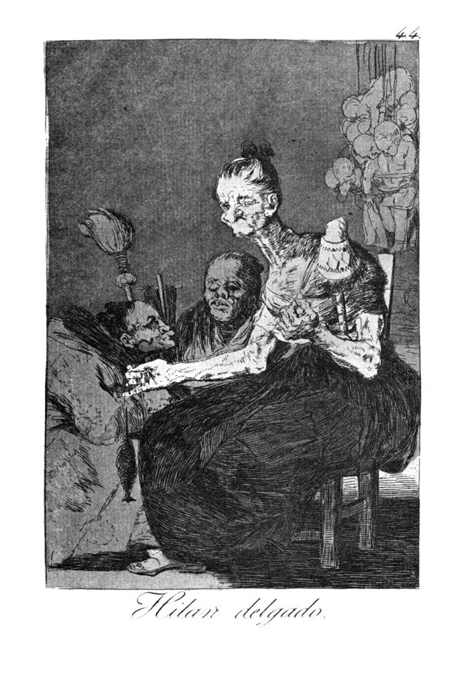 Ti offriamo una riproduzione artigianale su tela dell'opera famosa 'Filano finemente' di Francisco Goya, dal Museo delle Riproduzioni.