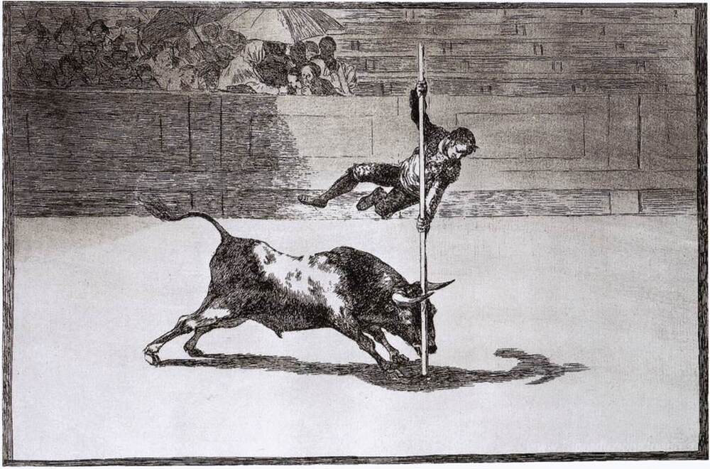 Ti offriamo una riproduzione artigianale su tela dell'opera famosa 'La velocità e audacia di Juanito Api?ani nel Ring di Madrid' di Francisco Goya, dal Museo delle Riproduzioni.