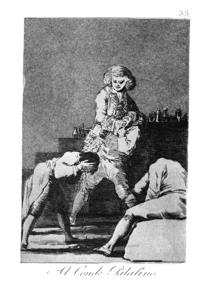 Ti offriamo una riproduzione artigianale su tela dell'opera famosa 'Per il conte palatino' di Francisco Goya, dal Museo delle Riproduzioni.