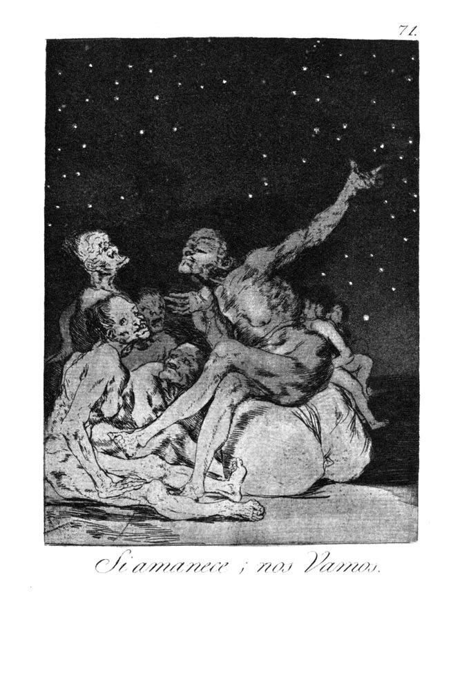 Ti offriamo una riproduzione artigianale su tela dell'opera famosa 'Quando fa giorno saremo fuori' di Francisco Goya, dal Museo delle Riproduzioni.