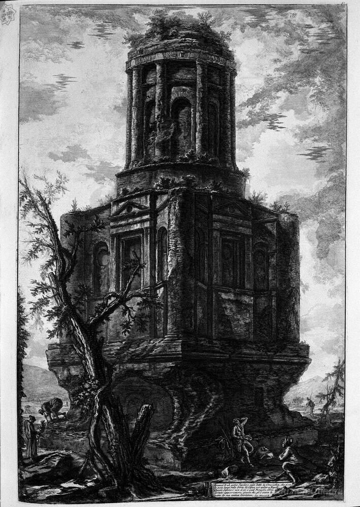 Ti offriamo una riproduzione artigianale su tela dell'opera famosa 'Resti di una tomba antica, ora chiamato la conocchia, che si ved' di Giovanni Battista Piranesi, dal Museo delle Riproduzioni.