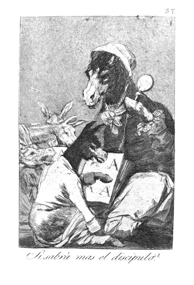 Ti offriamo una riproduzione artigianale su tela dell'opera famosa 'Sarà lo studente più saggio?' di Francisco Goya, dal Museo delle Riproduzioni.