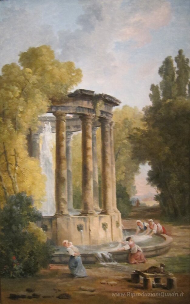 Ti offriamo una riproduzione artigianale su tela dell'opera famosa 'The Women Lavatrice' di Hubert Robert, dal Museo delle Riproduzioni.