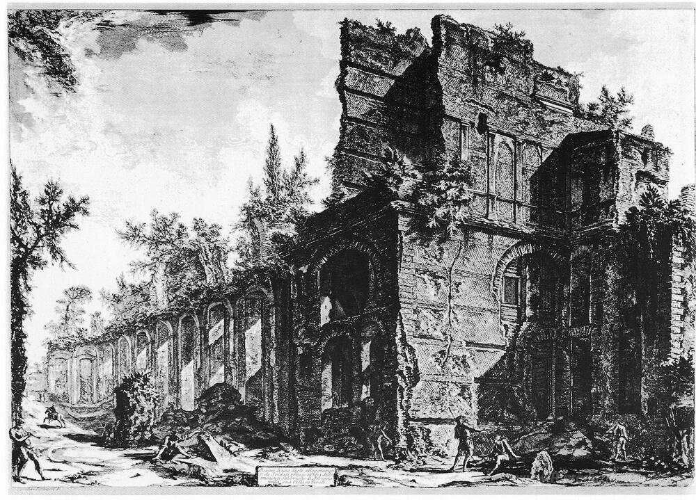 Ti offriamo una riproduzione artigianale su tela dell'opera famosa 'Vedute di Roma' di Giovanni Battista Piranesi, dal Museo delle Riproduzioni.
