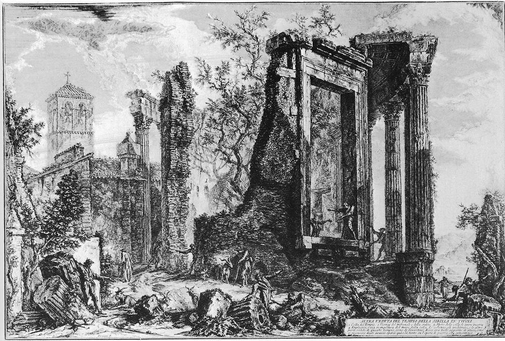 Ti offriamo una riproduzione artigianale su tela dell'opera famosa 'Vedute di Roma' di Giovanni Battista Piranesi, dal Museo delle Riproduzioni.