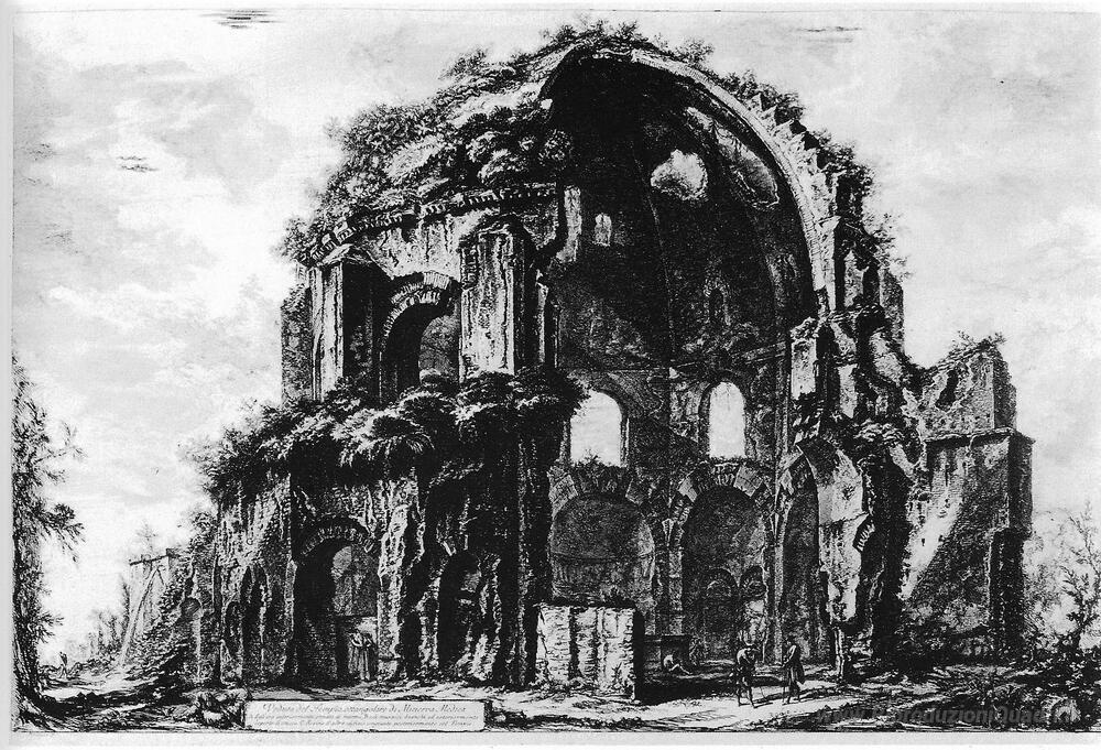 Ti offriamo una riproduzione artigianale su tela dell'opera famosa 'Vedute di Roma' di Giovanni Battista Piranesi, dal Museo delle Riproduzioni.