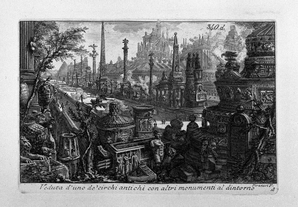 Ti offriamo una riproduzione artigianale su tela dell'opera famosa 'Vista di uno dei monumenti dell'antica Circo' di Giovanni Battista Piranesi, dal Museo delle Riproduzioni.