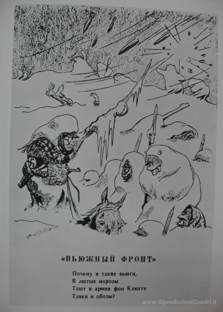 Ti offriamo una riproduzione artigianale su tela dell'opera famosa 'Anteriore Blizzard' di Kukryniksy, dal Museo delle Riproduzioni.