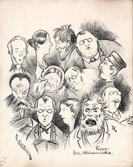 Ti offriamo una riproduzione artigianale su tela dell'opera famosa 'Fesjaa Vaare Medmennesker' di Theodor Severin Kittelsen, dal Museo delle Riproduzioni.